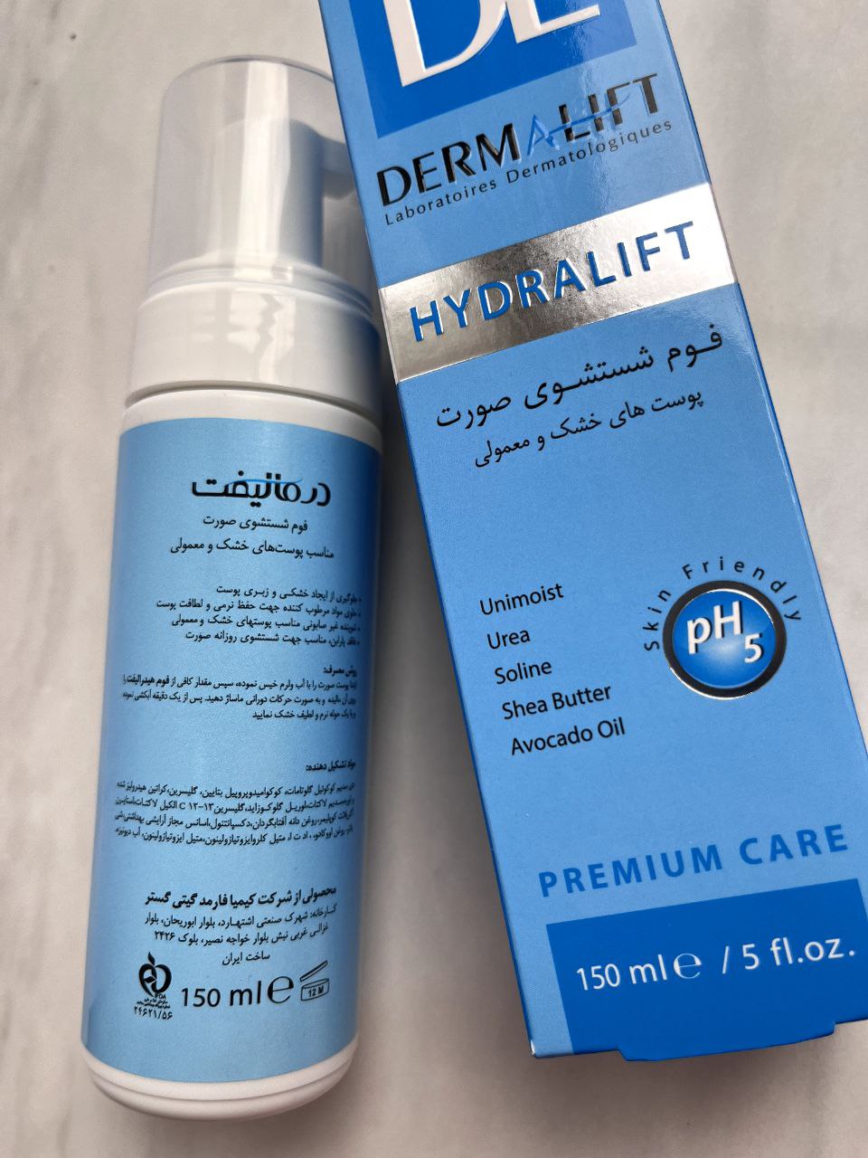 فوم شستشوی صورت درمالیفت پوست خشک، پاک کننده آلودگی ها و مواد آرایشی تولید شده با فرمولاسیون غیر صابونی، مناسب برای پوستهای خشک و حساس فوم درمالیفت پوست خشک، حاوی گلیسیرین و اوره برای حفظ رطوبت طبیعی پوست موثر در تغذیه و ترمیم پوست با روغن دانه آفتابگردان و آووکادو فوم شستشوی درمالیفت مناسب برای پوستهای خشک و معمولی پیشگیری از خشکی و زبری پوست پس از شستشو دارای PH 5 و سازگار با PH طبیعی پوست فاقد پارابن و سولفات، ایمن برای استفاده روزانه