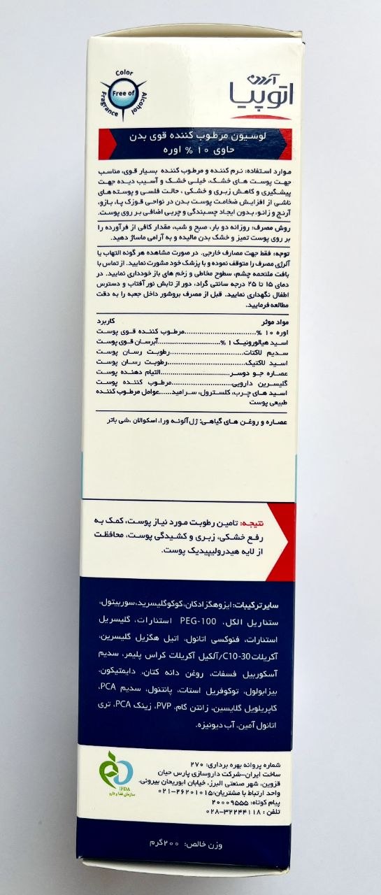 درباره محصول : لوسیون بدن 10 درصد اوره اوسرین آتوپیا آردن، رفع زبری و خشکی پوست جلوگیری از ضخیم شدن پوست بدن با استفاده از اوره 10% لوسیون بدن اوره آردن مناسب برای پوست های خشک و خیلی خشک موثر در هیدراته نگه داشتن پوست به کمک هیالورونیک اسید لوسیون بدن اوره اوسرین آردن اتوپیا، دارای خاصیت آنتی اکسیدانی